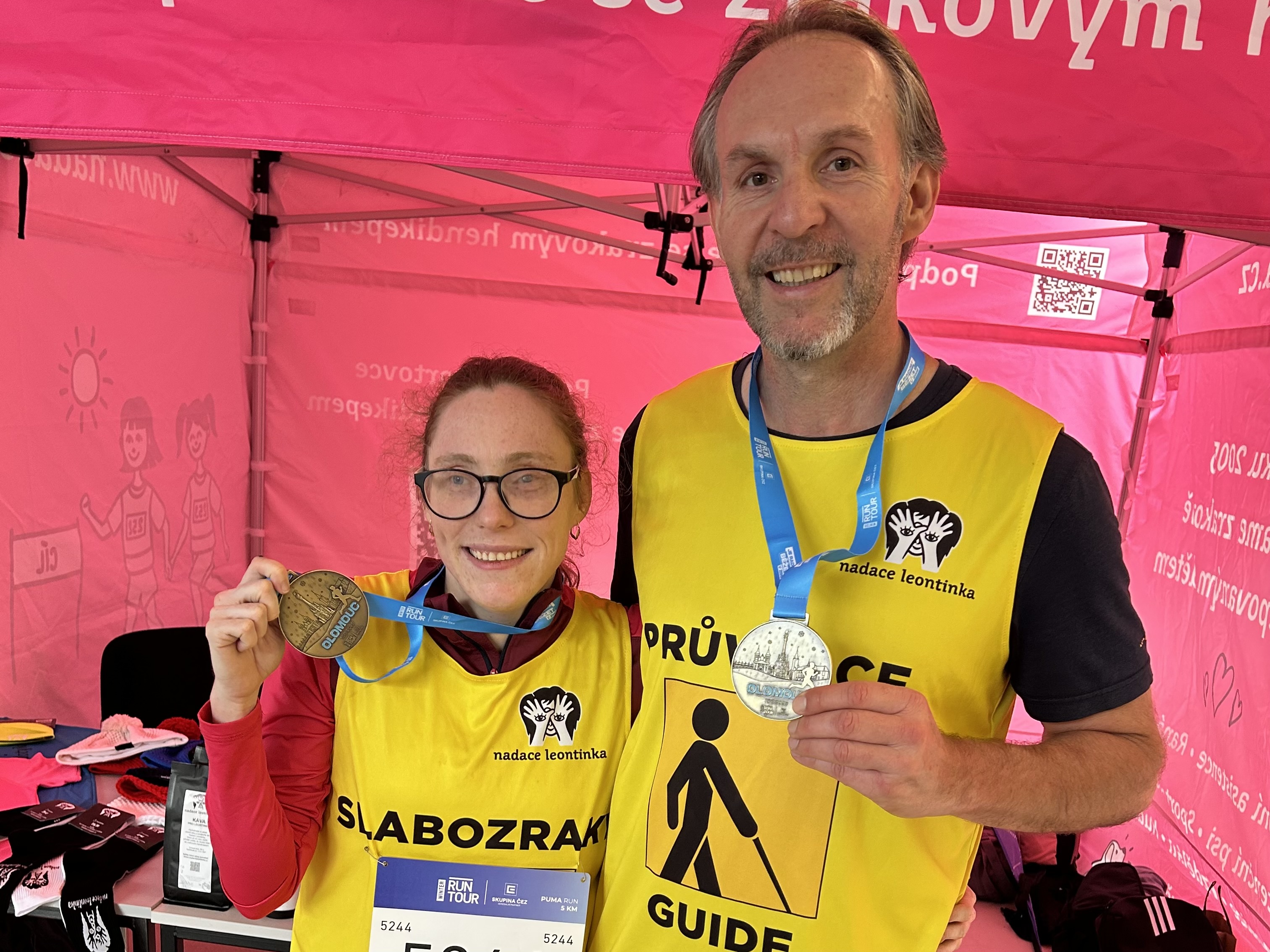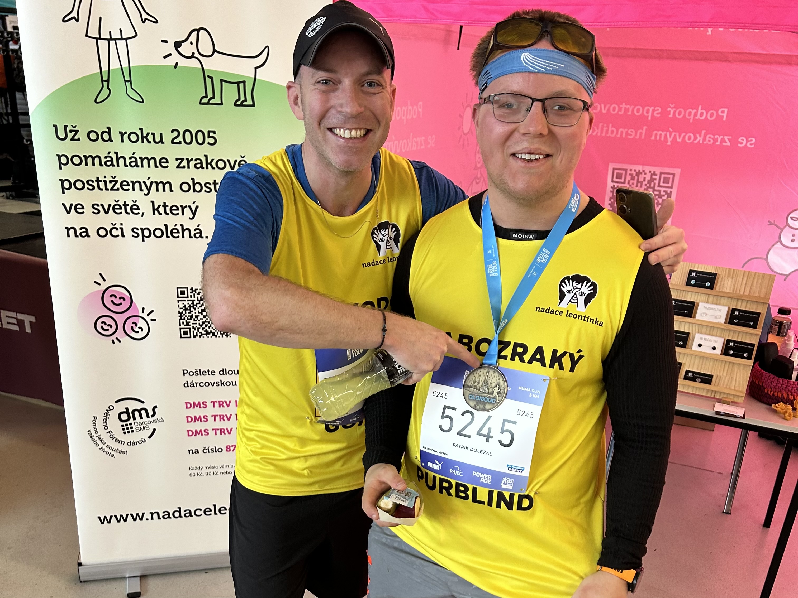 Nesmím zapomenout ani na našeho nevidomého běžce Vlastu. Tento zkušený sportovec potvrdil svou pověst běžecké legendy Libereckého kraje a ve své kategorii 70+ obsadil úžasné 1. místo. Skvěle si vedli také Petr na závodě na 10 kilometrů a Patrik na své tradiční pětce, na které si zaběhl svůj osobní rekord. Velké poděkování patří i Markétě a Jendovi za jejich neocenitelnou pomoc u našeho nadačního stánku.